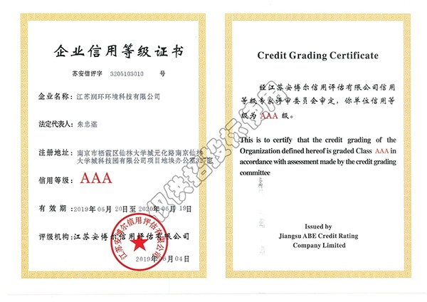 企業(yè)信用等級(jí)3A證書(shū)