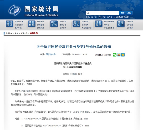 日前,國家統(tǒng)計局發(fā)布了《國民經(jīng)濟(jì)行業(yè)分類》國家標(biāo)準(zhǔn)第1號修改單,詳情如下: