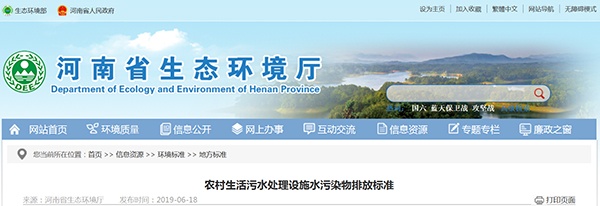 河南省生態環境廳發布《農村生活污水處理設施水污染物排放標準》