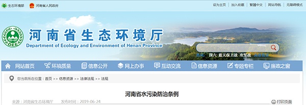 河南省生態環境廳發布《河南省水污染防治條例》
