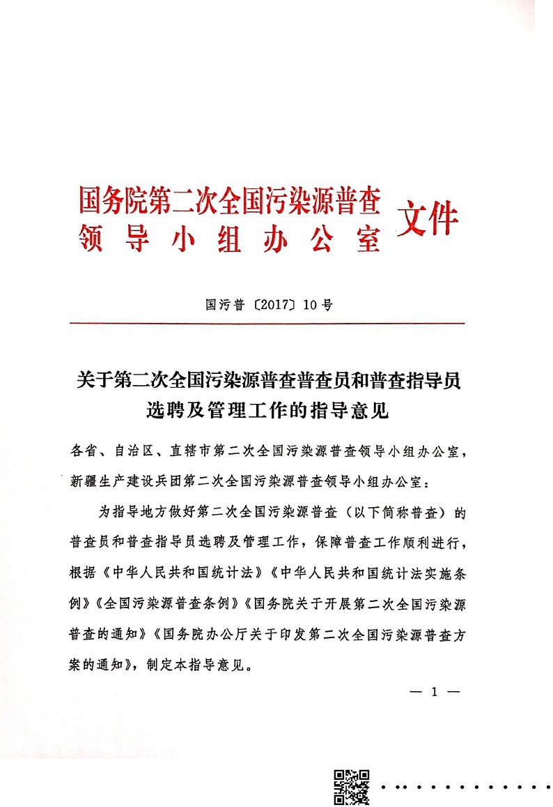 國污普【2017】10號關(guān)于第二次全國污染源普查普查員和普查指導(dǎo)員選聘及管理工作的指導(dǎo)意見