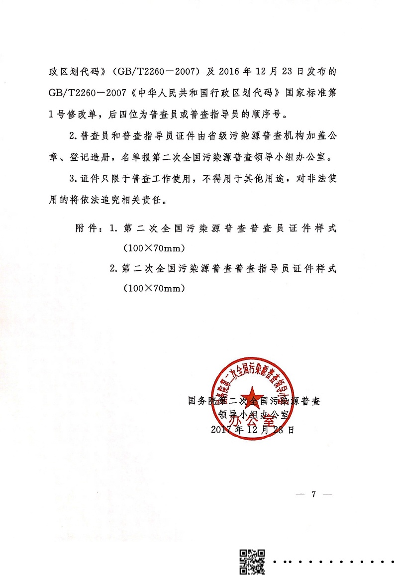 上一篇:國污普【2017】4號關(guān)于印發(fā)《第二次全國污染源普查部門分工》的通知 下一篇:國污普【2017】11號關(guān)于做好第三方機(jī)構(gòu)參與第二次全國污染源普查工作的通知