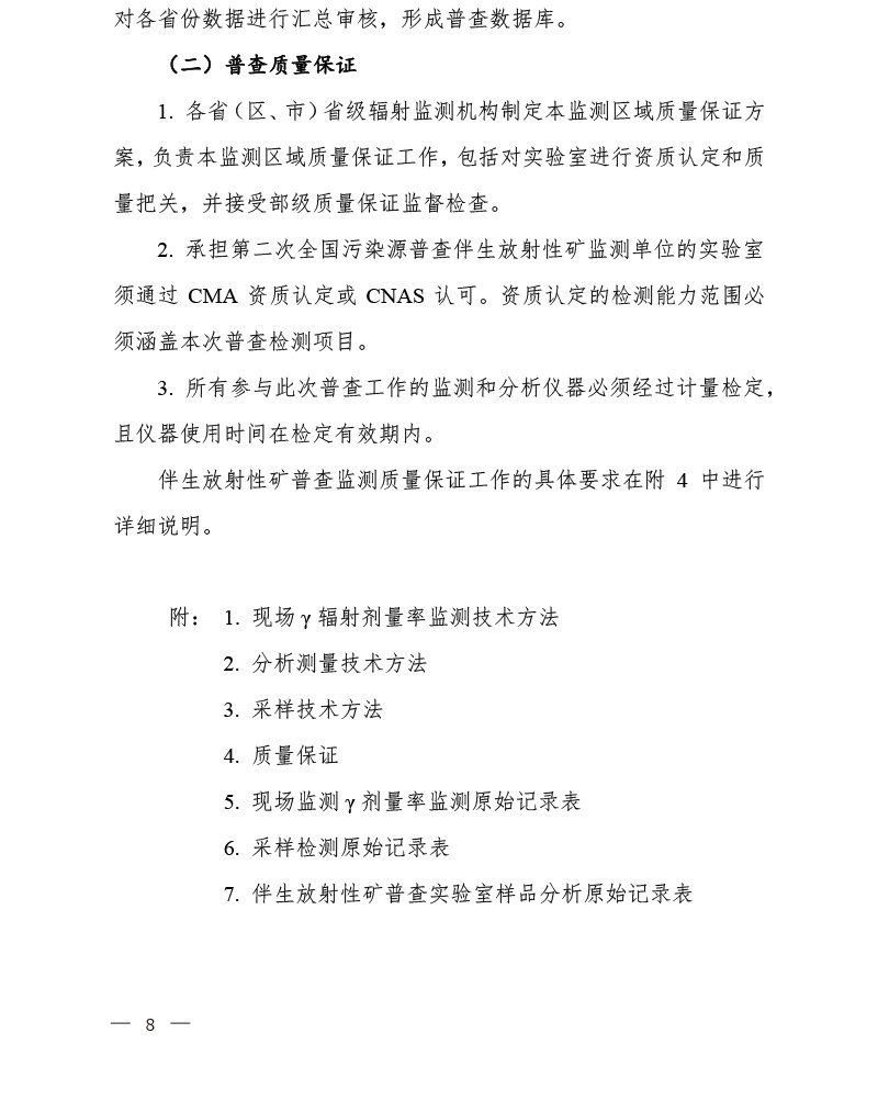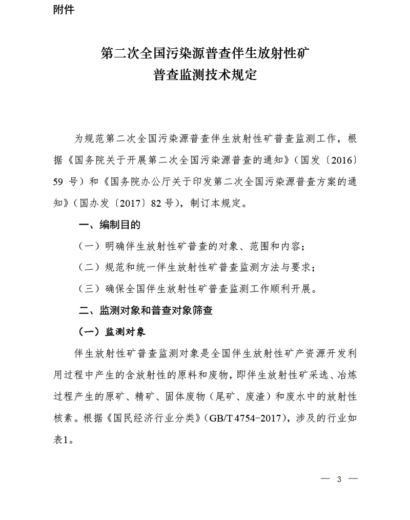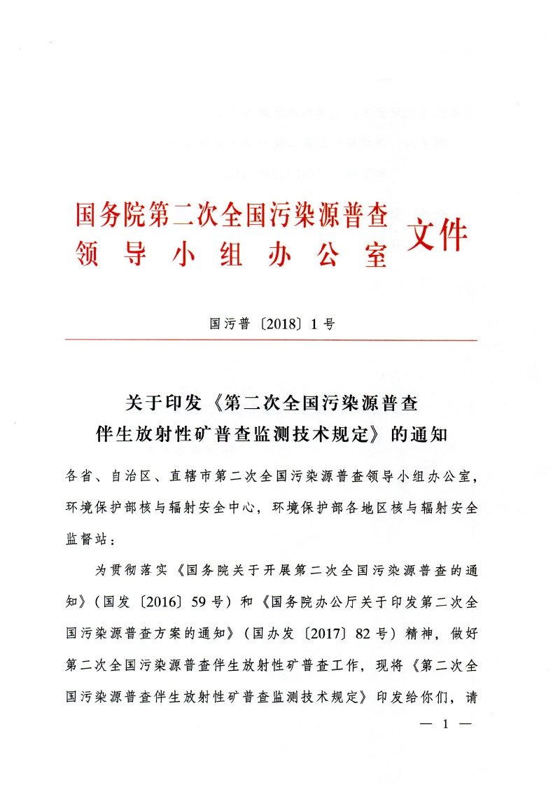 國污普【2018】1號關(guān)于印發(fā)《第二次全國污染源普查伴生放射性礦普查檢測技術(shù)規(guī)定》的通知全文