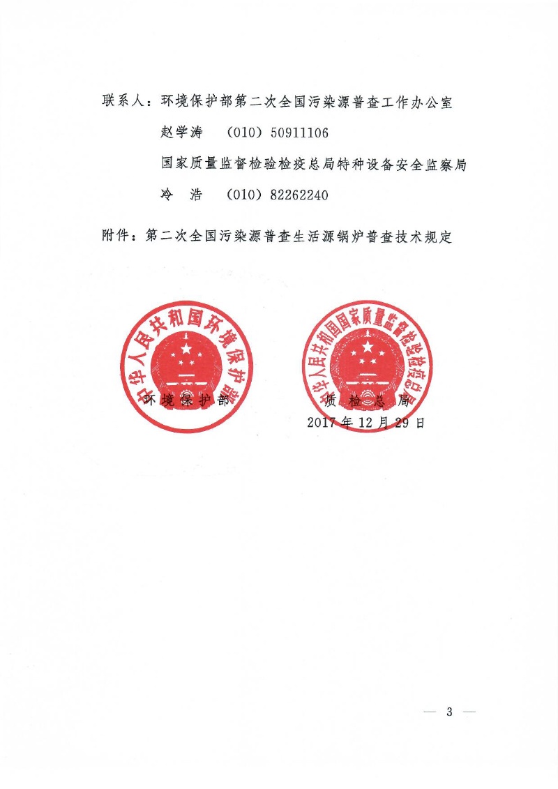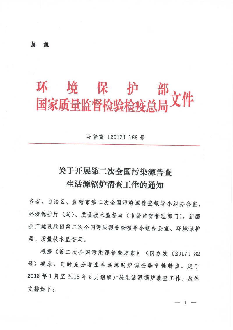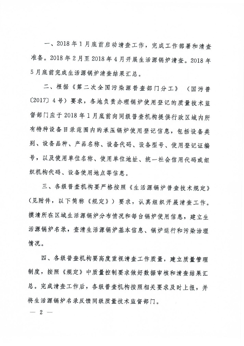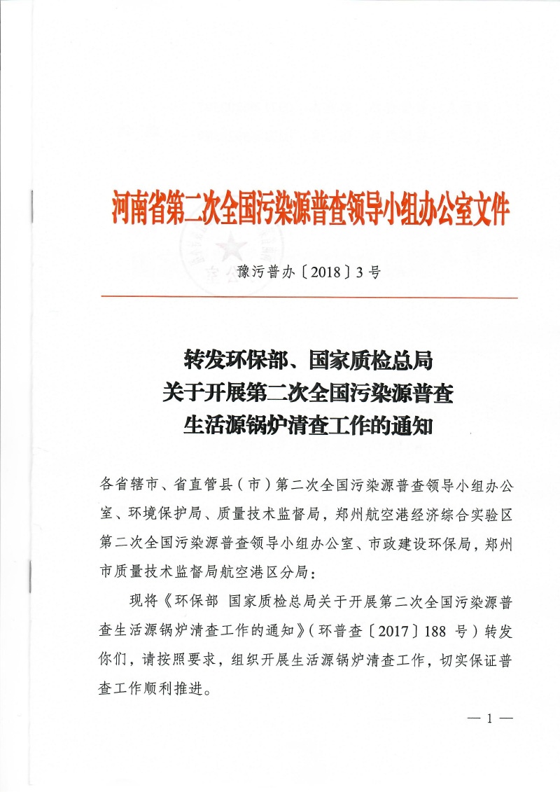 豫污普辦【2018】3號轉發環保部、國家質檢總局關于開展第二次全國污染源普查生活源鍋爐清查工作的通知