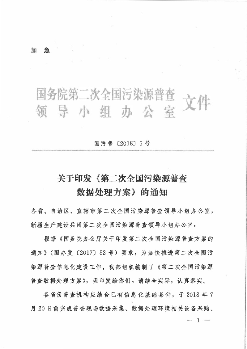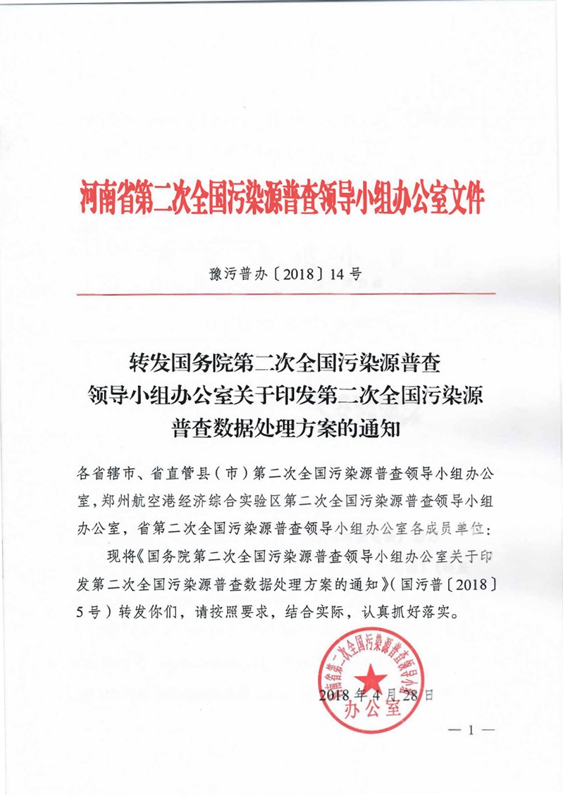 豫污普辦【2018】14號轉發國務院二污普領導小組辦公室關于印發二污普數據處理方案的通知