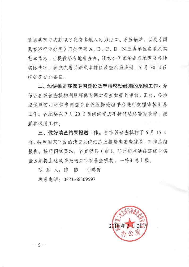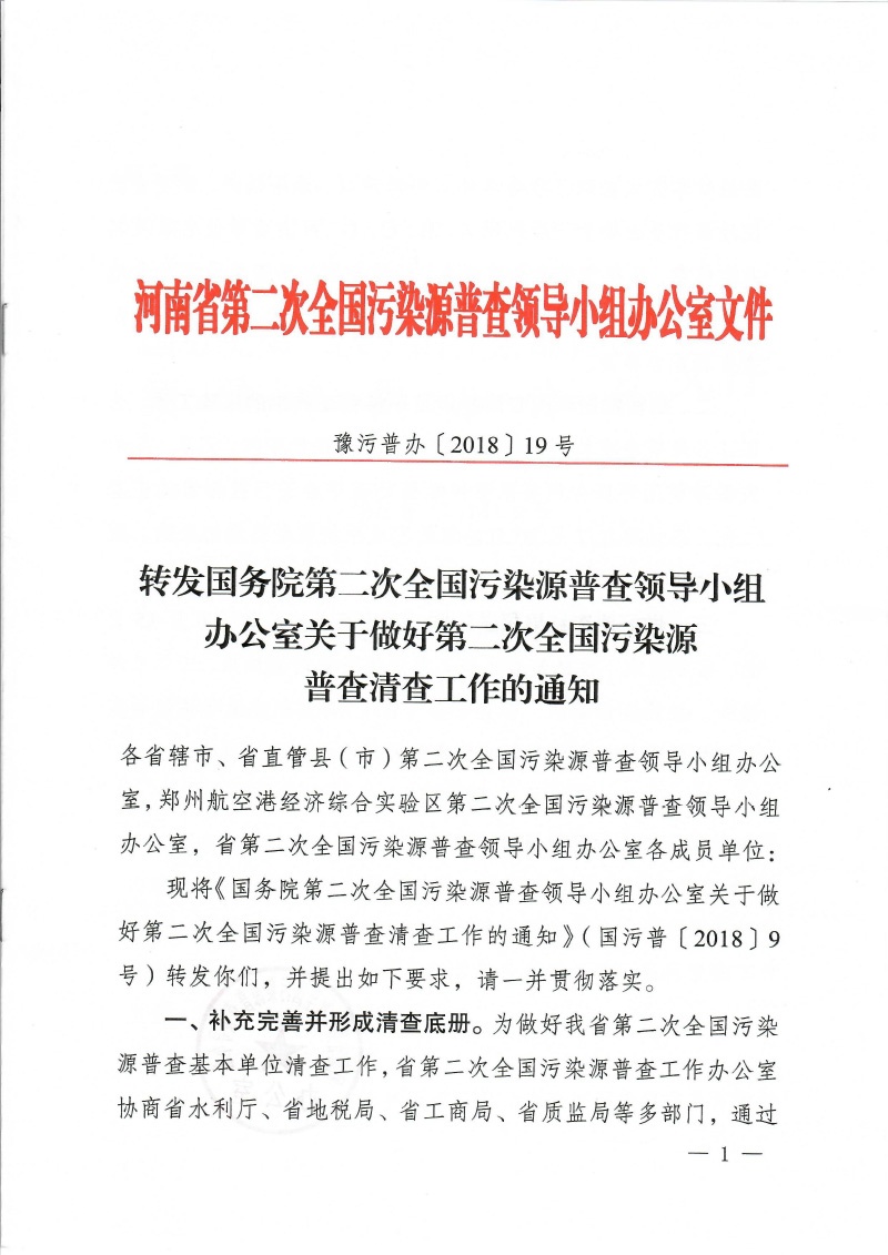 豫污普辦【2018】19號轉發國家清查工作的通知