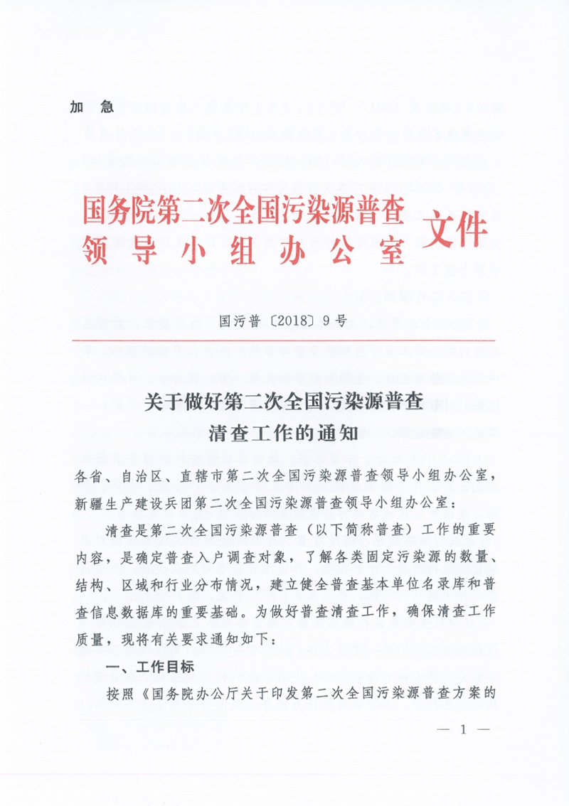 上一篇:豫污普辦【2018】18號關于配合做好生態環境部第二次全國污染源普查前期工作檢查的通知 下一篇:豫污普辦【2018】20號關于印發河南省第二次全國污染源普查質量管理方案的通知