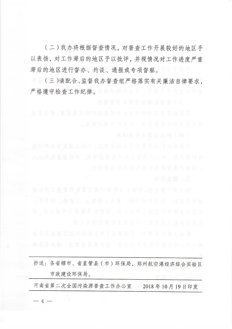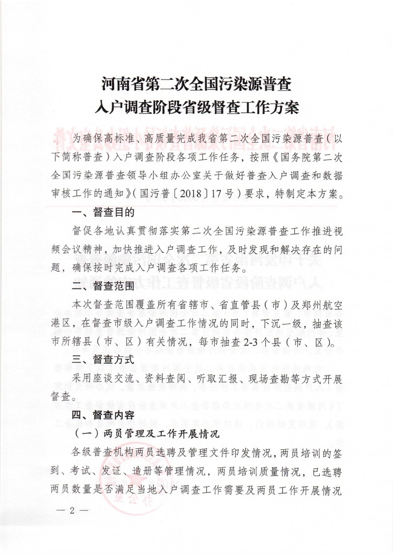豫污普辦【2018】39號關于印發河南省第二次全國污染源普查入戶調查階段省級督查工作方案的通知