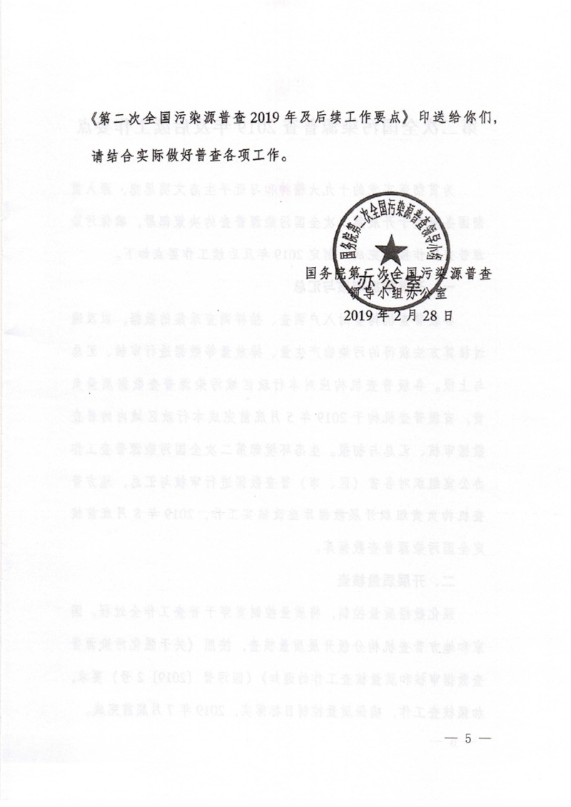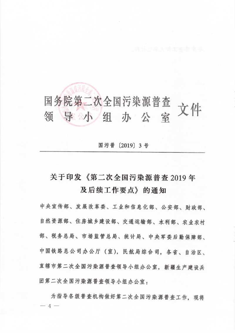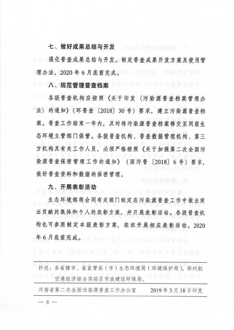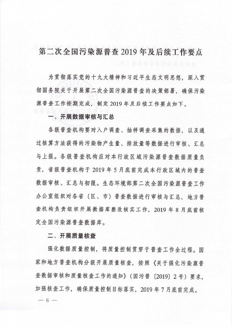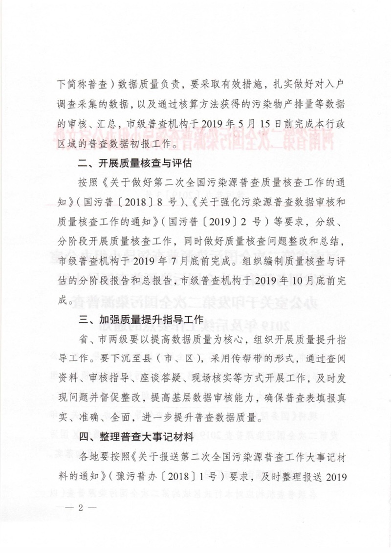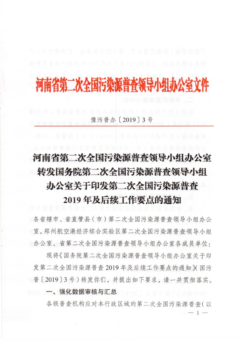 豫污普辦【2019】3號轉發國務院第二次全國污染源普查領導小組辦公室關于印發第二次全國污染源普查2019年及后續工作要點的通知