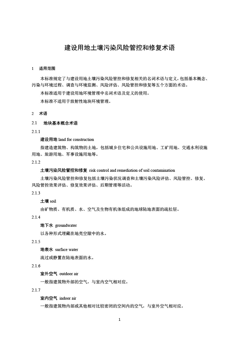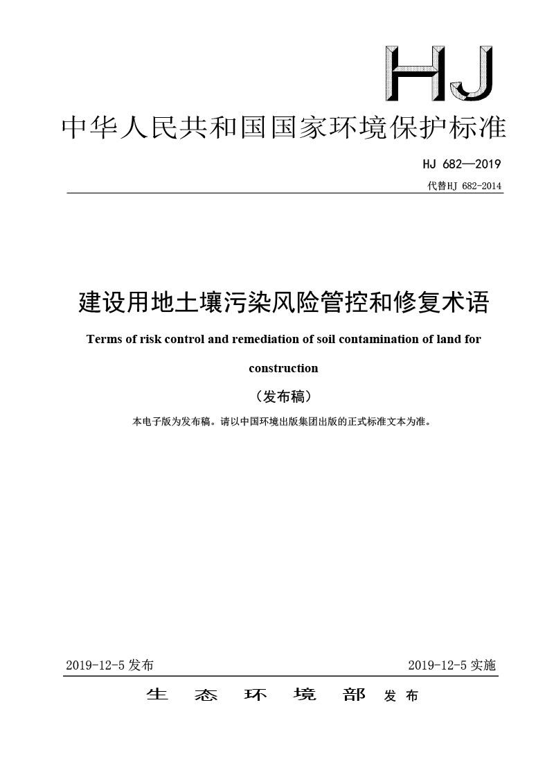 建設用地土壤污染風險管控和修復術語( HJ 682-2019 )