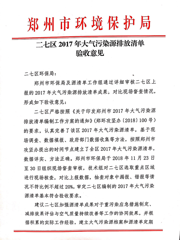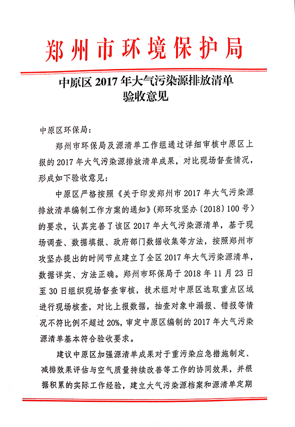 我司承接的“中原區(qū)、二七區(qū)、惠濟區(qū)2017年大氣污染源排放清單”順利通過驗收